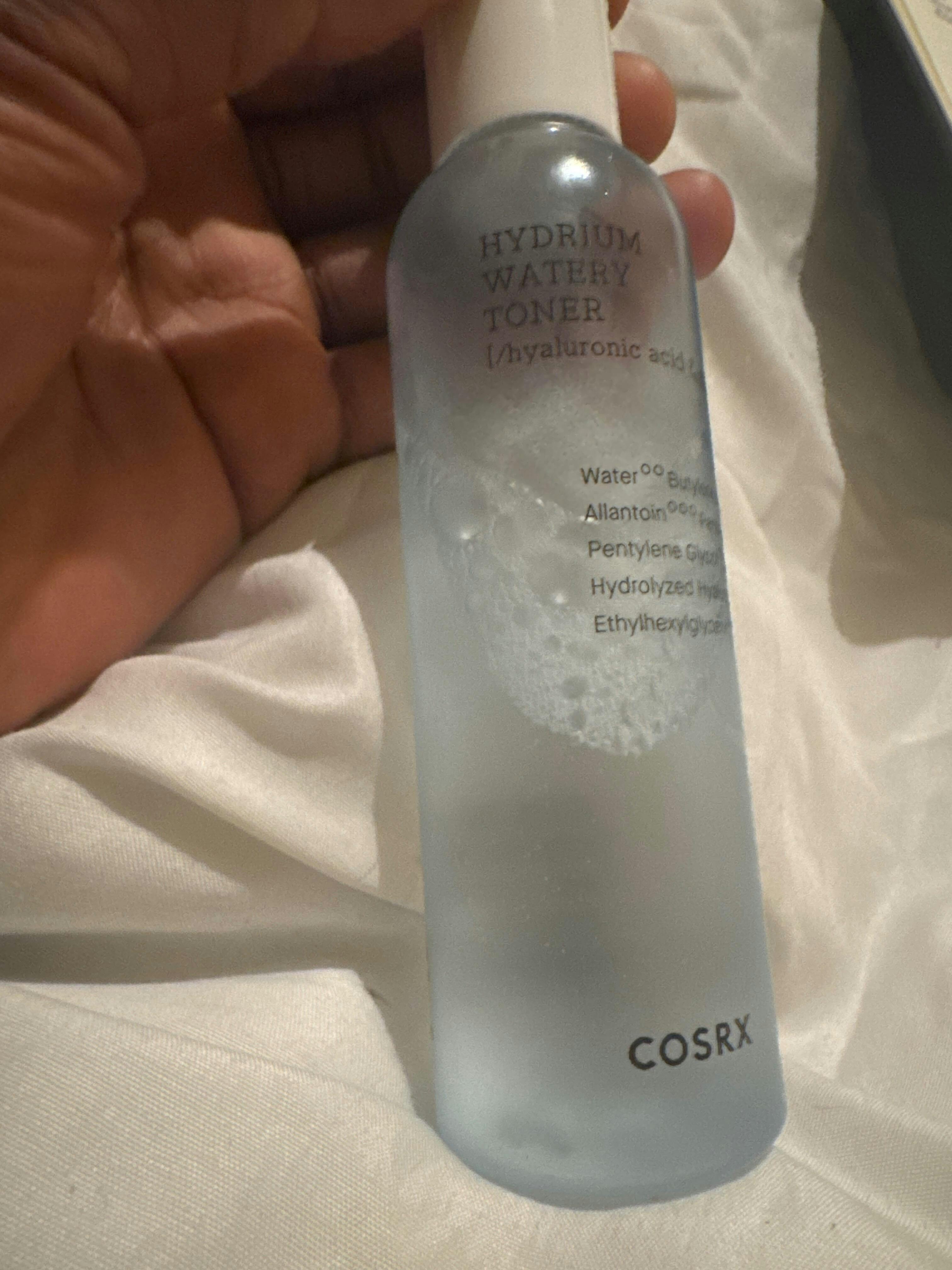 The COSRX Hydrium Watery Toner is a moisturising toner with vitamin B5 and hyaluronic acid for hydrated and dewy skin. B5, also known as panthenol, is the key ingredient of the Hydrium line. B5 has moisturising, regenerating, and anti-inflammatory effects and is safe to use on all skin types. With the Hydrium Synergy-8 Complex which consists of six hyaluronic acids, d-panthenol, and allantoin, this toner fills the skin with moisture and helps to keep it hydrated for a long time.