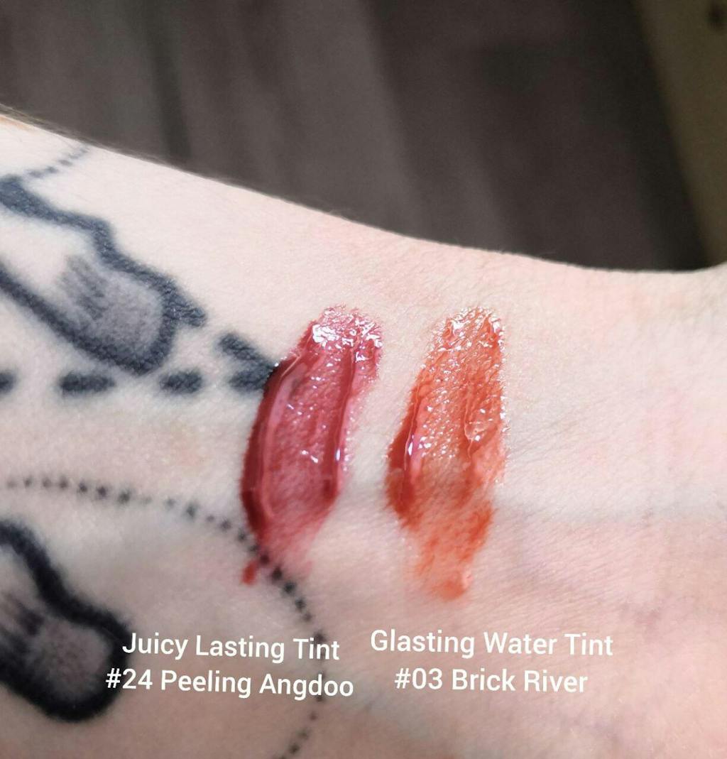 I bought the lip gloss because I liked the Romand glasting water tint so much but unfortunately I like this gloss a little less. I think it's heavier than the glasting water tint and more tacky. Also it has a little bit of a scent I don't really like and it's not that long-lasting. But overall it's still a good gloss!